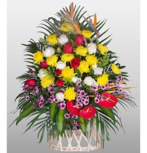 中国花圈网提醒各位朋友,在选择花圈时候要细心比较。把最美的花圈献给最敬爱的先人。帛事花圈「港台样式」购买时候需要对花圈的花样进行正确的选择。每一种鲜花都代表不同的含义。我们在实际中需要对其进行正确的理解。一般来,在祭奠花圈中选择的类型有菊花、石竹等。随着鲜花行业的发展,人们也习惯用各式各样的鲜花来寄托哀思。这样可供选择的花样就逐渐的增多了。
