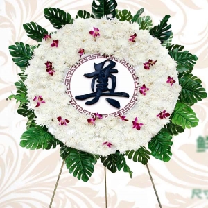 材料:粉色香水白菊4枝,苏醒粉黄菊9枝,搭配适量迷你菊、叶上花圈 花圈语:有一段走过的路我不会忘,有一个爱过的人放在心上,有一个追逐的梦叫做理想,过去那一场美好时光,我会好好珍藏! 清明节金牛座送花圈推荐三 花圈束:缘份