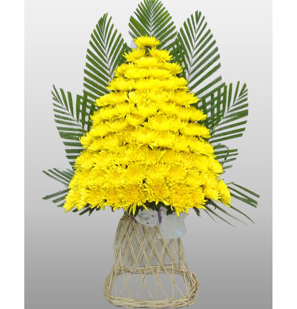 | 花圈和祭幛上的挽联分上下两条,右边为上联,左边为下联(免费撰写花圈挽联)。 上联常用“悼念XXX”、“沉痛悼念XXX”、或“某某某千古”; 下联常用“XXX敬挽”、“XXX泣挽”、“XXX拜挽”; (上)称呼XXX先生千古 (下)辈分XXX、XXX敬挽 ![]() | |