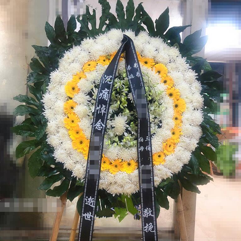 | 花圈和祭幛上的挽联分上下两条,右边为上联,左边为下联(免费撰写花圈挽联)。 上联常用“悼念XXX”、“沉痛悼念XXX”、或“某某某千古”; 下联常用“XXX敬挽”、“XXX泣挽”、“XXX拜挽”; (上)称呼XXX先生千古 (下)辈分XXX、XXX敬挽 ![]() | |