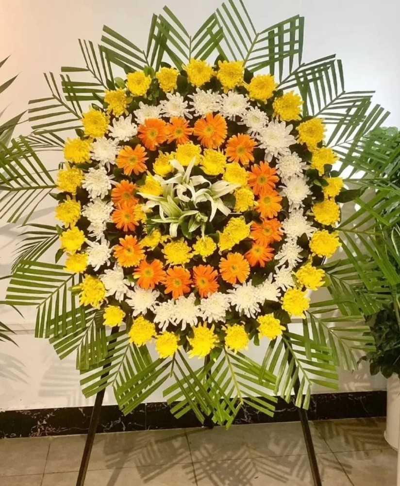 | 花圈和祭幛上的挽联分上下两条,右边为上联,左边为下联(免费撰写花圈挽联)。 上联常用“悼念XXX”、“沉痛悼念XXX”、或“某某某千古”; 下联常用“XXX敬挽”、“XXX泣挽”、“XXX拜挽”; (上)称呼XXX先生千古 (下)辈分XXX、XXX敬挽 ![]() | |